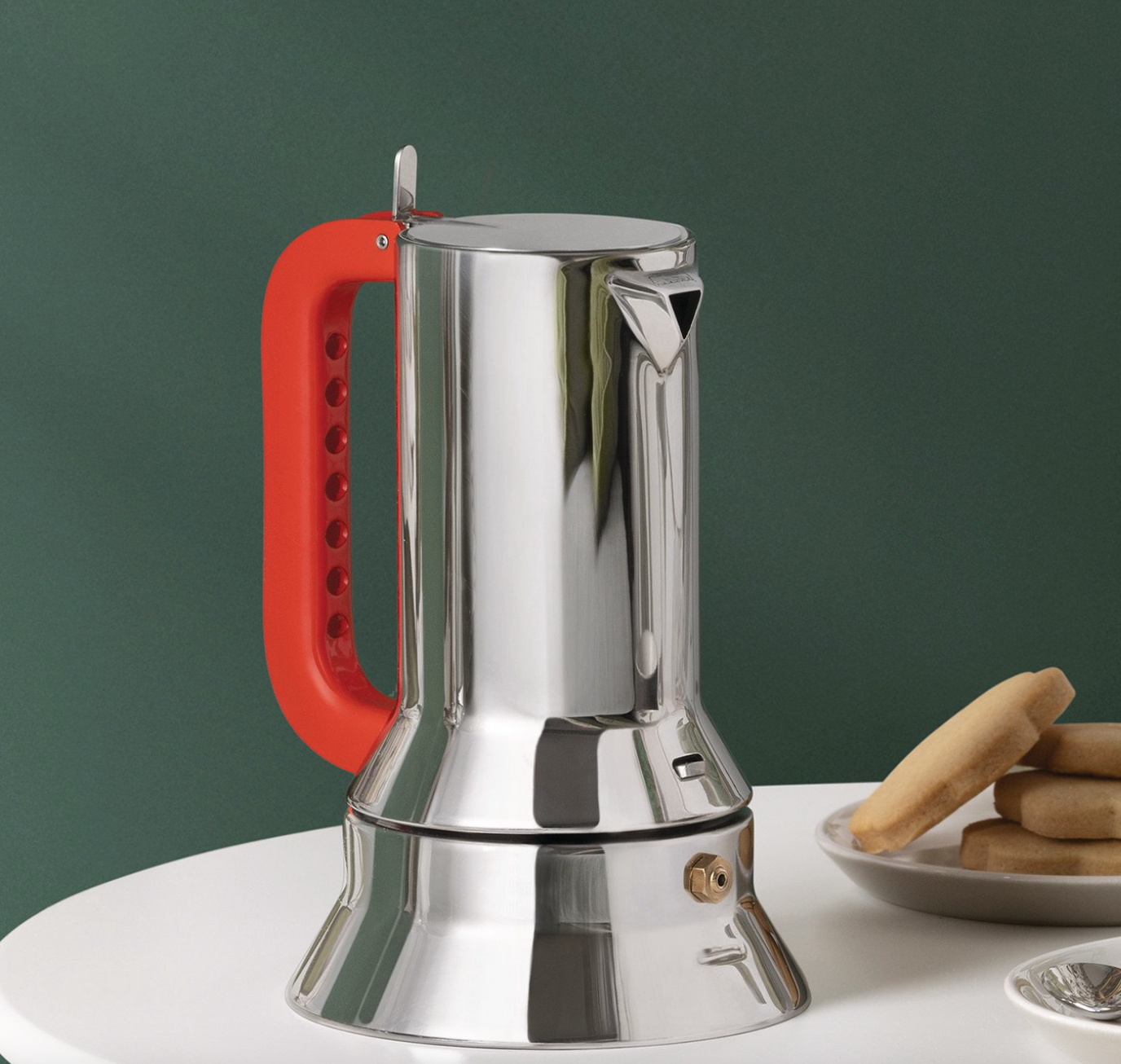 Una versione dell’iconica caffettiera 9090 che omaggia il genio del suo autore presentandosi al pubblico con un manico da lui ideato e mai fino ad ora realizzato. Il manico, forato per aumentare la dispersione del calore, è un dettaglio funzionale quanto esteticamente espressivo. Il colore rosso era usato da Richard Sapper per enfatizzare gli elementi mobili e di snodo dei suoi progetti, proprio come questo manico particolare che, nel suo movimento, racchiude un innovativo sistema di chiusura.