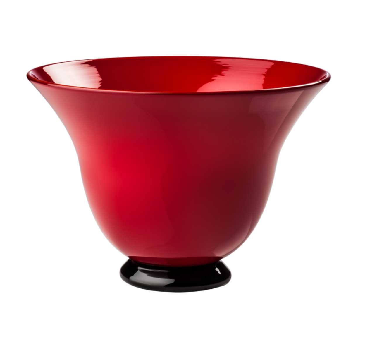 “Creato nel 1930, è vetro soffiato dalle linee essenziali, sinuose ed equilibrate. Riflesso della Golden Age, è il ritorno all’ordine apparso nei più disparati ambiti artistici. Con un’eleganza enfatizzata con garbo dalla lavorazione del vetro Lattimo, nata nel XV secolo per imitare la delicata porcellana.”