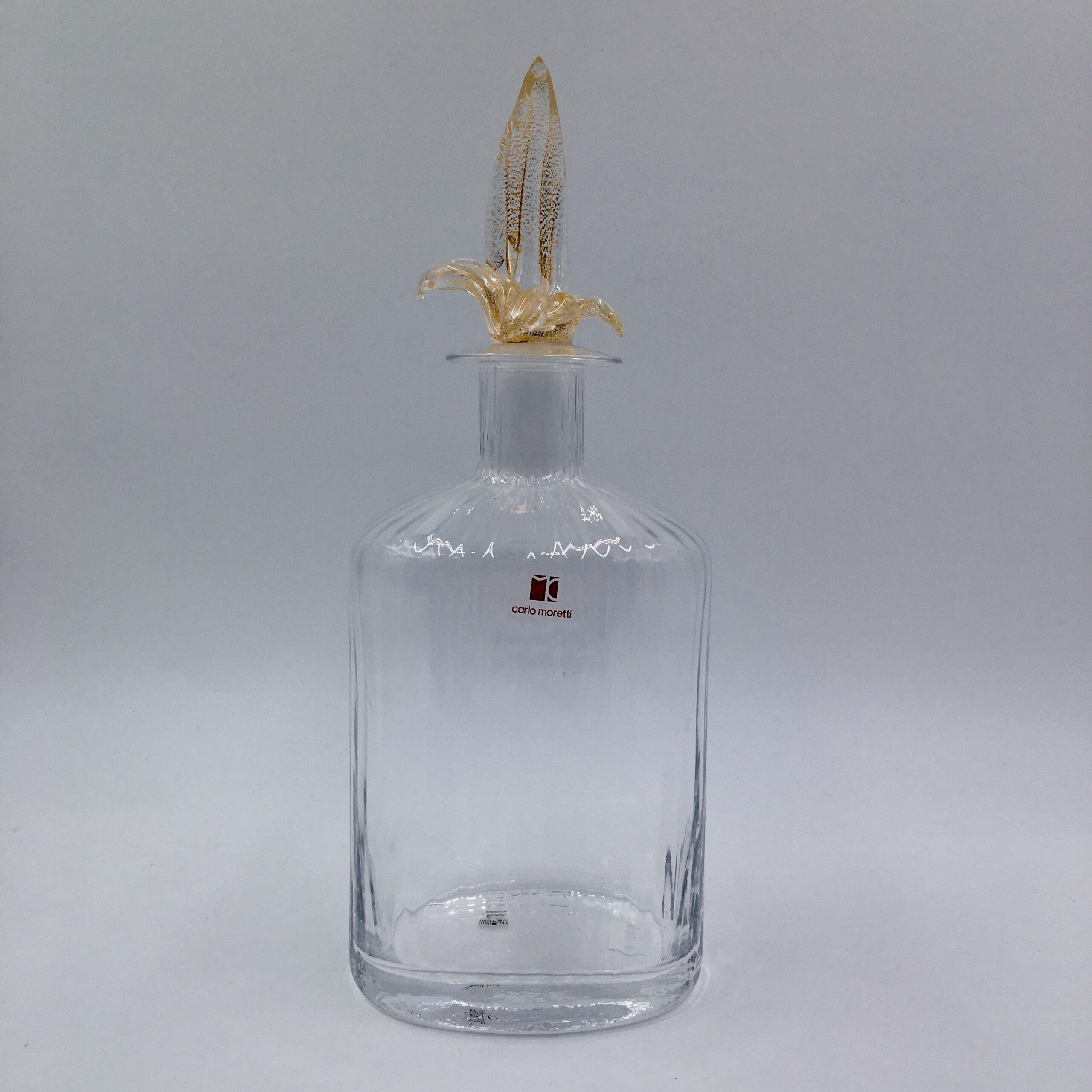 Bottiglia in vetro di Murano soffiata a bocca.