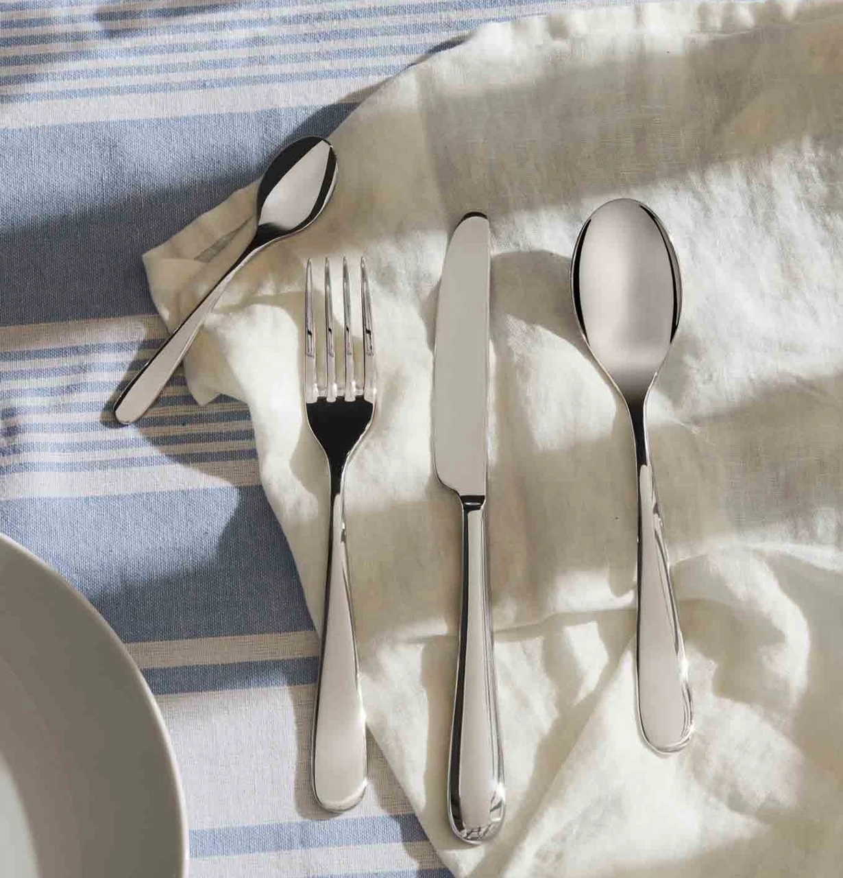 Nuovo Milano è uno dei servizi più completi del catalogo Alessi, offrendo una selezione di 26 diverse tipologie di posate. Realizzata in acciaio inossidabile e nata dal desiderio di Sottsass di progettare tutti gli elementi per apparecchiare una “Bella tavola”, questa collezione di posate è un classico del design contemporaneo