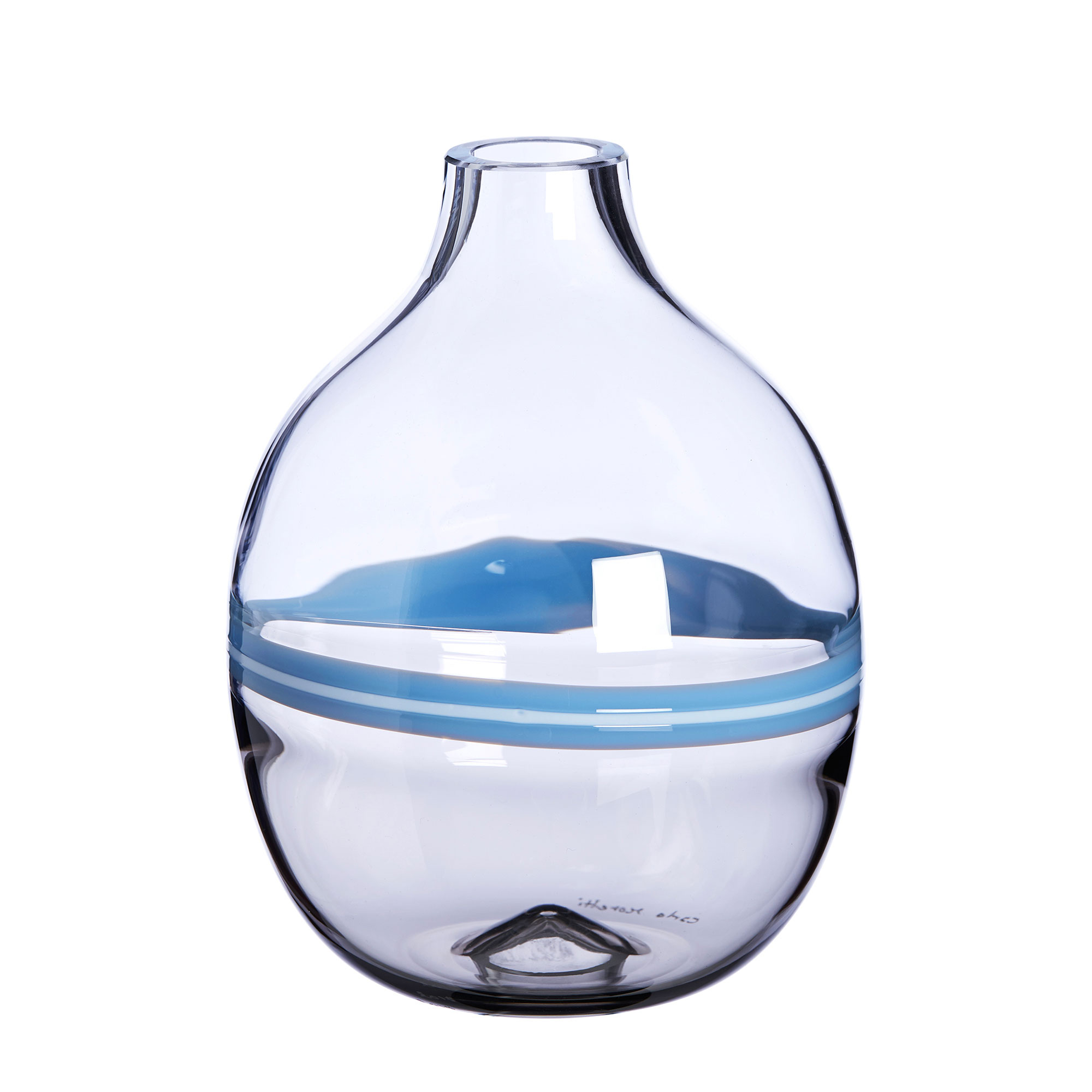Vaso in Cristallo di Murano soffiato a bocca e rifinito a mano in diversi motivi decorativi applicati a caldo di: murrine, cannette, festoni, macchie, fasce, anelli e spirali colorate, colori trasparenti e in pasta. Firmati e datati.